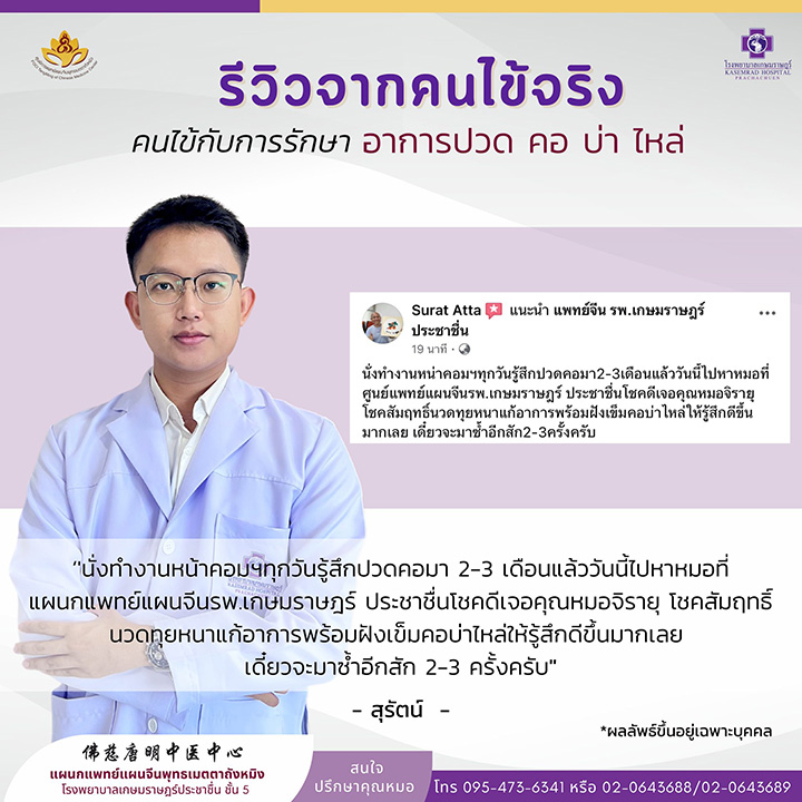 "นั่งทำงานหน้าคอมฯทุกวันรู้สึกปวดคอมา 2-3 เดือนแล้ววันนี้ไปหาหมอที่แผนกแพทย์แผนจีนรพ.เกษมราษฎร์...