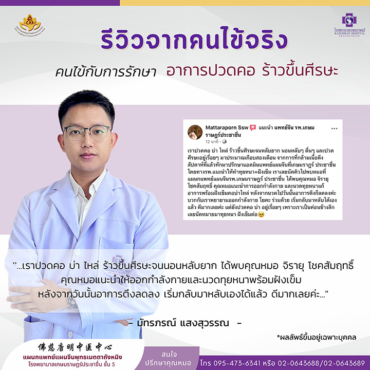 '‘...เราปวดคอ บ่า ไหล่ ร้าวขึ้นศีรษะจนนอนหลับยาก ได้พบคุณหมอ จิรายุ...