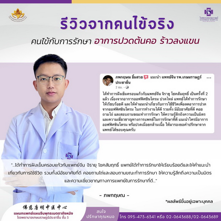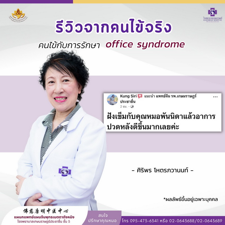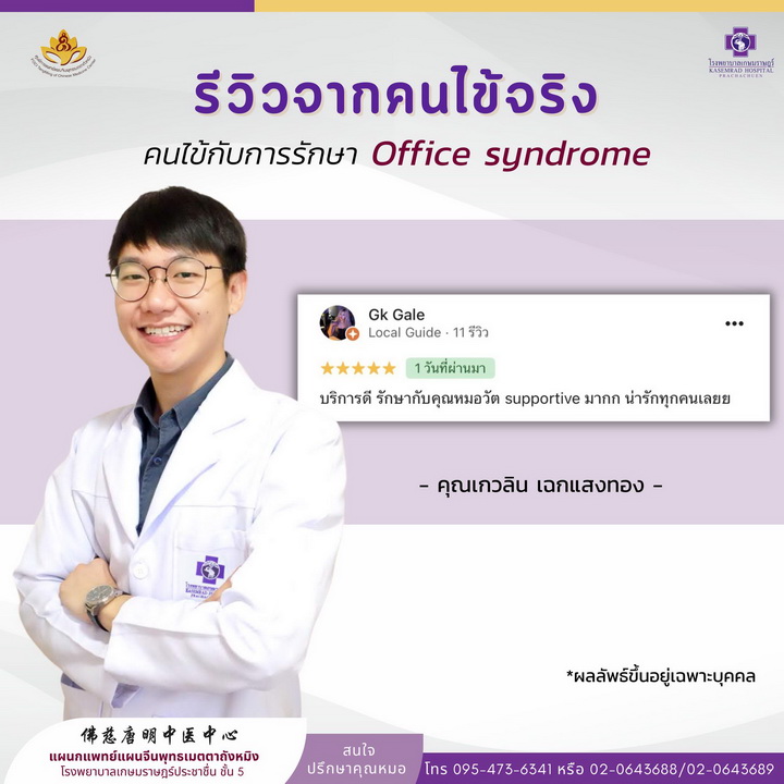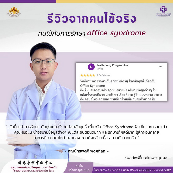 "...รักษาอาการออฟฟิสซินโดรมกับทางคุณหมอกชพรแล้วอาการดีขึ้นเยอะมาก คุณหมอมือเบา...