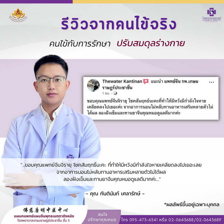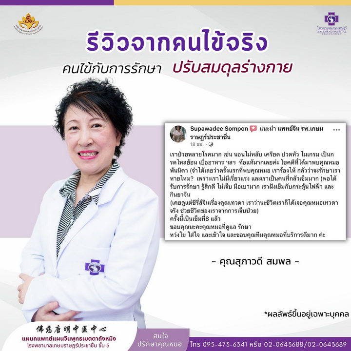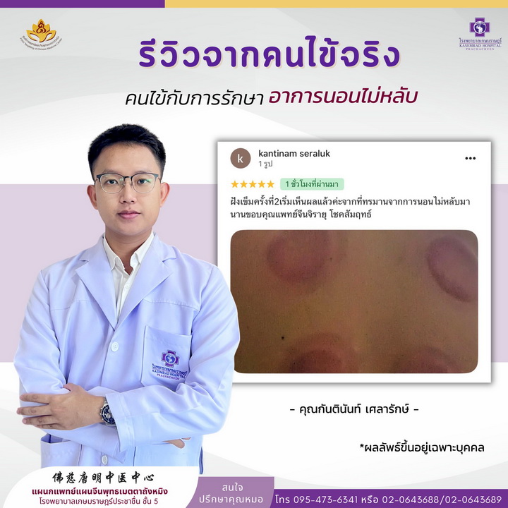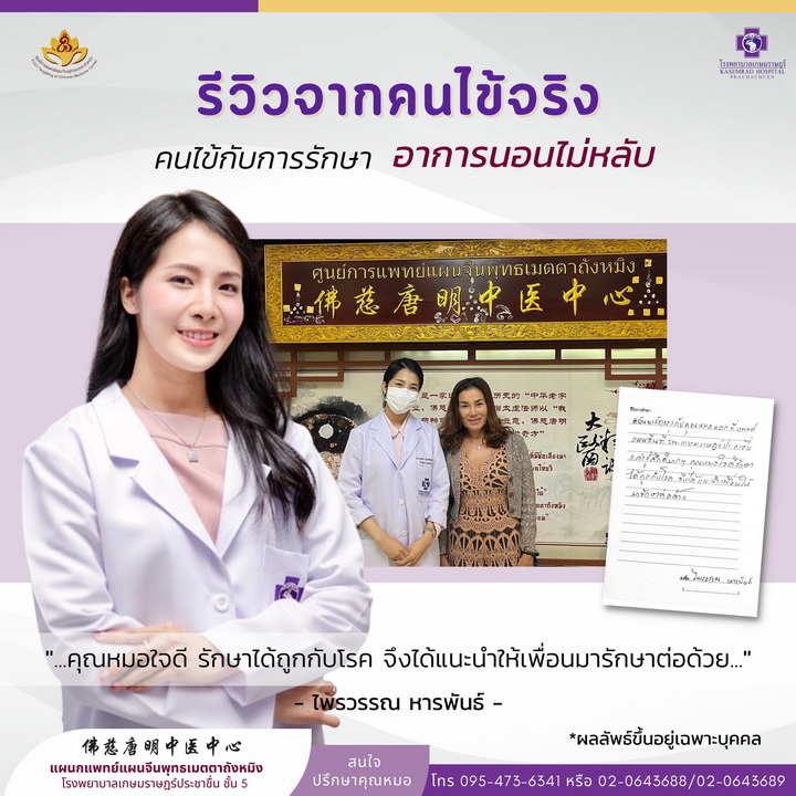 "ฝังเข็มครั้งที่ 2 เริ่มเห็นผลแล้วค่ะ จากที่ทรมานจากการนอนไม่หลับมานาน ขอบคุณแพทย์จีนจิรายุ...