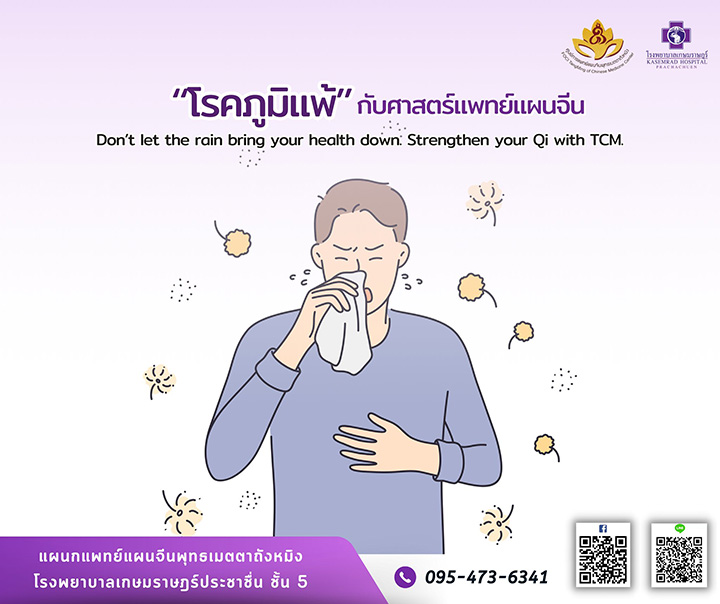 ในมุมมองของแพทย์แผนจีน อาการภูมิแพ้เกิดจากความไม่สมดุลของพลังชีวิต (ชี่) โดยเฉพาะ "พลังป้องกัน" หรือที่เรียกว่า Wei Qi